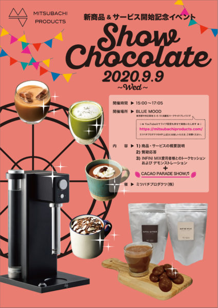 弊社がミツバチプロダクツ様と共同開発した「INFINI MIX」 の新製品発表会がただいまLive配信しております。チョコレートを飲む文化を広げる、 チョコレートドリンクマシン「INFINI MIX」 、是非下記URLからご視聴ください。