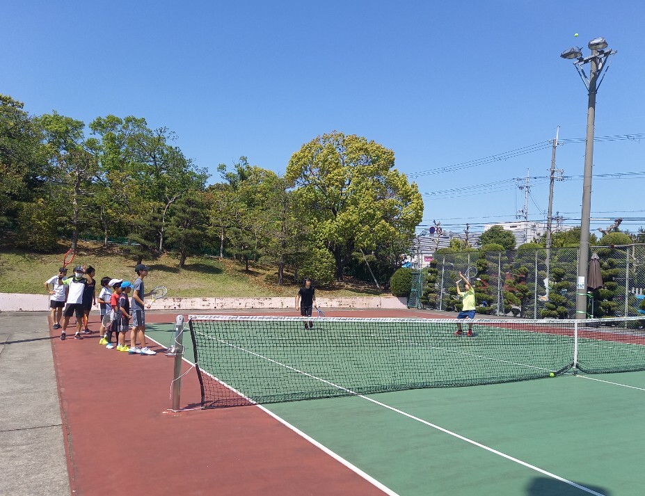 快晴の下、小学生5人・中学生8人・シニア3人の方がHEADラケットの試打会に参加し、サービス、レシーブ、ストローク、ボレー、スマッシュを試打ちしました。